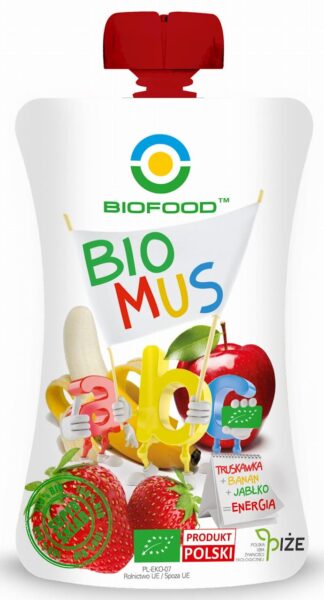 MUS TRUSKAWKOWO – BANANOWO – JABŁKOWY BEZGLUTENOWY BIO 90 g – BIO FOOD
