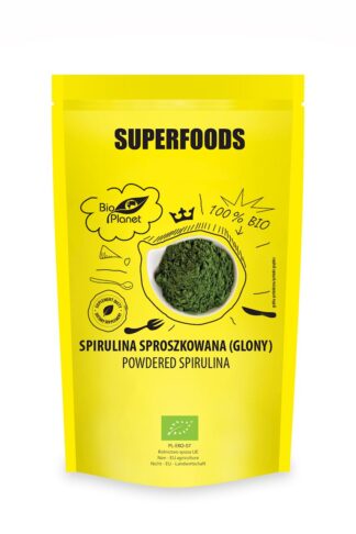 Ekologiczna chlorella to rodzaj ciemnozielonej, jednokomórkowej mikroalgi o kształcie kulistym. Ta słodkowodna alga dostępna w formie sproszkowanej pozyskiwana jest z najwyższej jakości glonów z kontrolowanych upraw. Ciemnozielony kolor oraz nazwę zawdzięcza chlorofilowi – naturalnemu barwnikowi. Wyróżnia się wysoką zawartością błonnika i pełnowartościowego białka roślinnego. Sposób przygotowania: ok. 5 g chlorelli (mała łyżeczka) dziennie. Popić dużą ilością wody. Można ją również dodać do kefirów, jogurtów, soków, a także wykorzystać jako składnik makaronów, sosów, czy domowych ciasteczek.