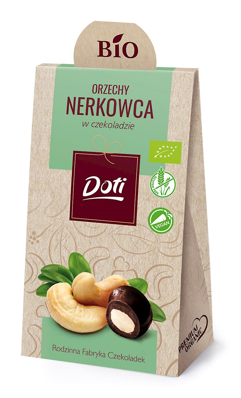 ORZECHY NERKOWCA oblane czekoladą. Wysoka zawartość błonnika pokarmowego. Produkt odpowiedni dla wegan.