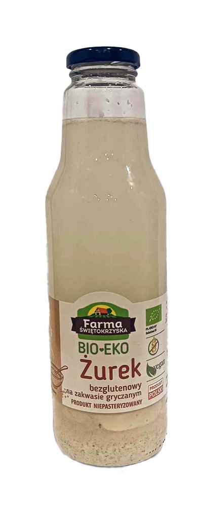 Jestem bazą tradycyjnej polskiej zupy! Przyrządzony zostałem z BIO mąki gryczanej, nie zawieram glutenu. Zachwycam wyjątkowym smakiem i prostym, naturalnym składem bez konserwantów. Dodatek do zup. Produkt niepasteryzowany. Bezglutenowy. Odpowiedni dla wegan. Bez dodatku cukru. Zawiera naturalnie występujące cukry.
